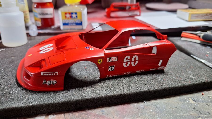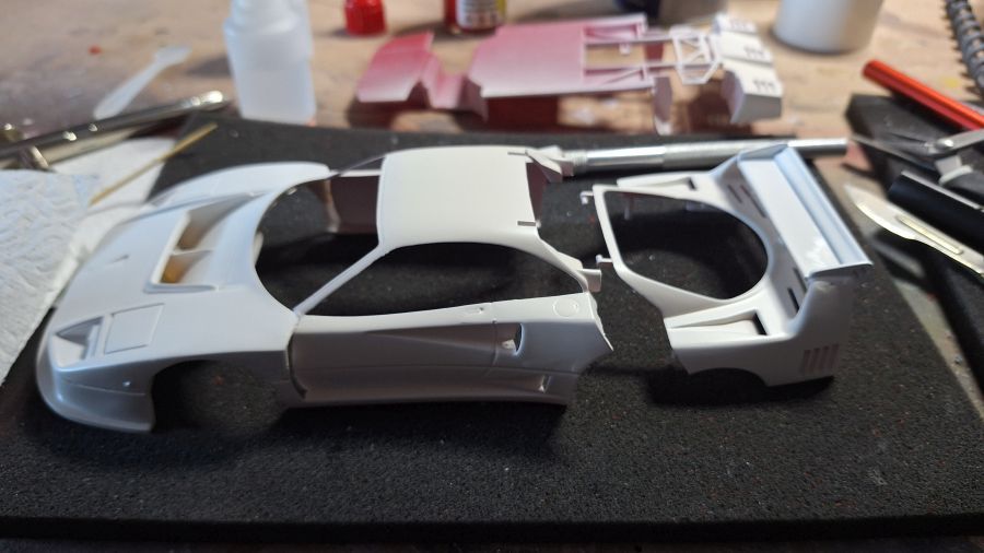 And back to the wheels... I bought 18 inch tires for it, but these ar not wide enough on the rims. I will now use the tires of my Porsche 911 RSR kit. I bought new rims and tires for that one. These don't fit perfect either, but for now i will accept it.