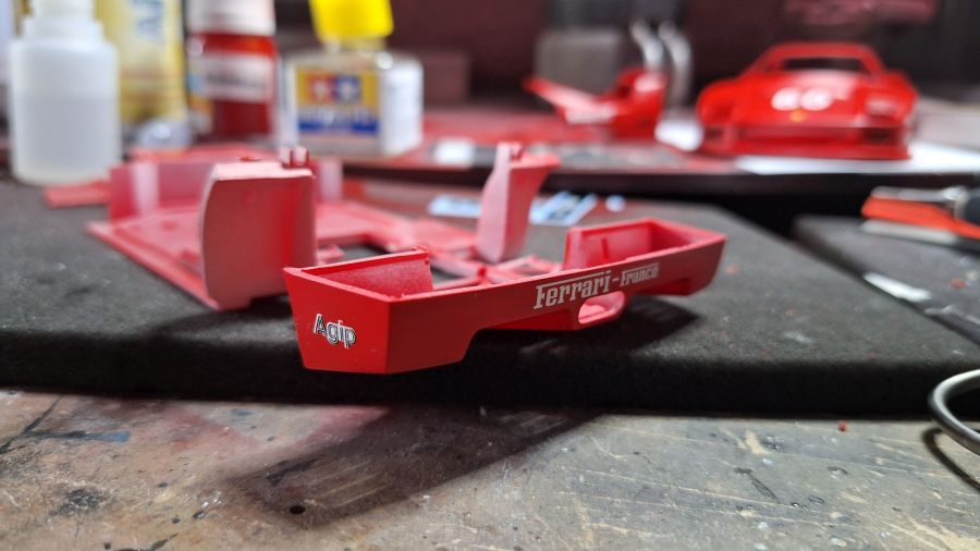 Adding the front spoiler, a part of the diffusor and the wheels.