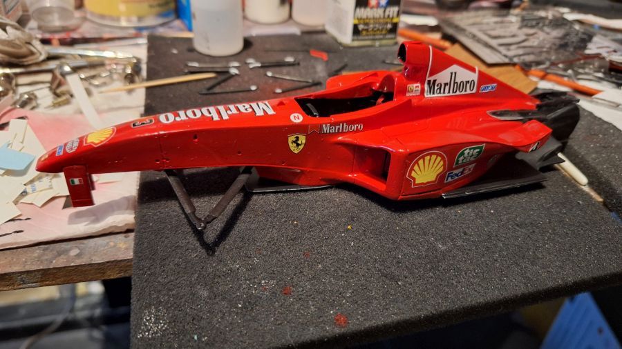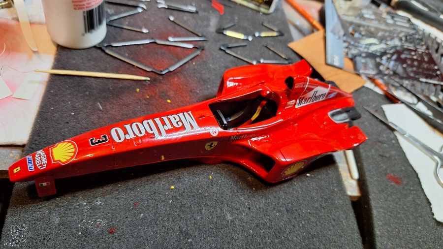 Time for another F1 kit. This time one that's a bit older. The Ferrari F399 from 1999 in the Michael Schumacher Monaco version. Starting problems straight away, because of a damaged floor/diffusor.