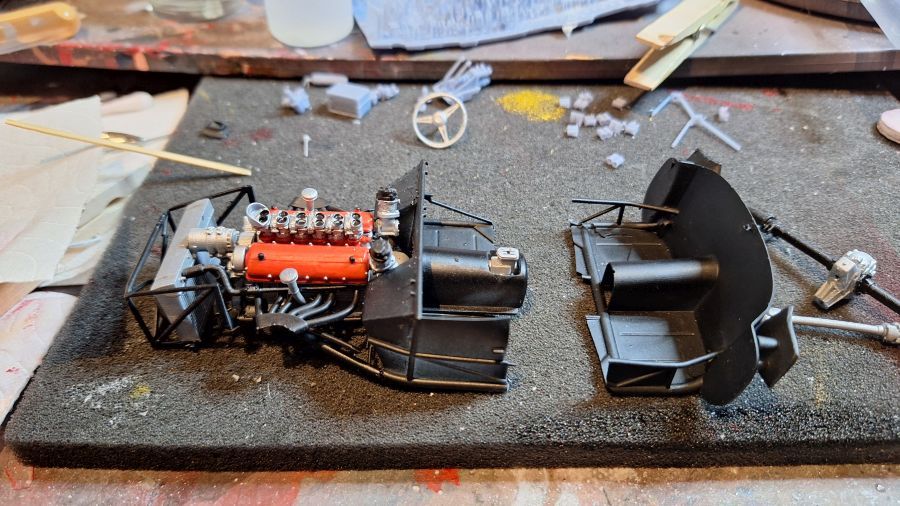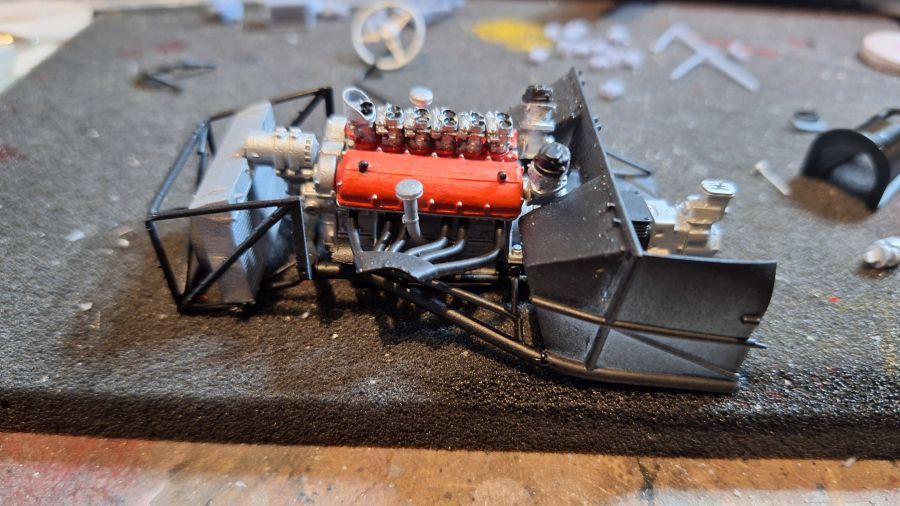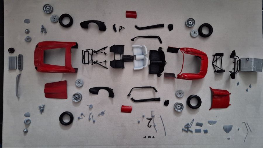Ik kwam deze 3D geprinte kit van een 1956 Ferrari 625 TR (Testa Rossa) tegen. Deze werd bestuurd door Maurice Trintignant bij de 24 Uur van Le Mans. Eerst alles lossnijden met mijn nieuw aangeschafte ultrasonisch mes. Dat zal even duren. Soms erg lastig te bepalen waar je moet snijden.