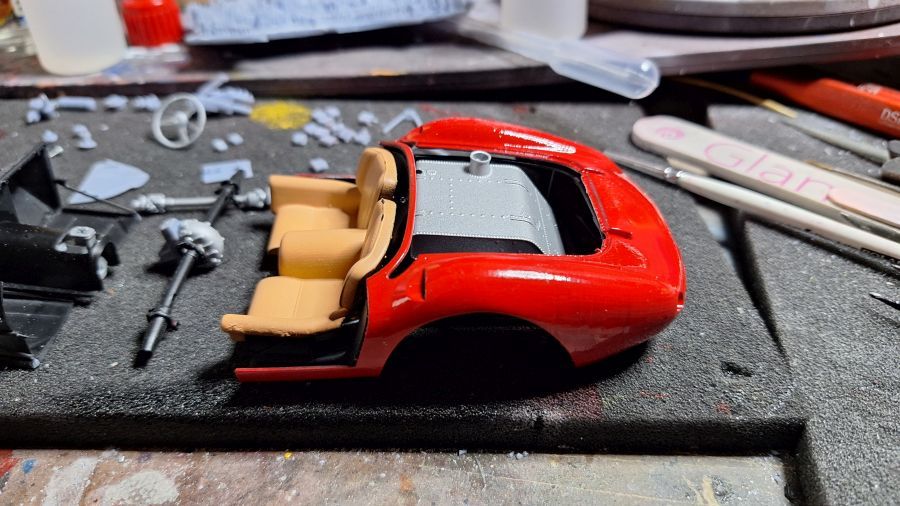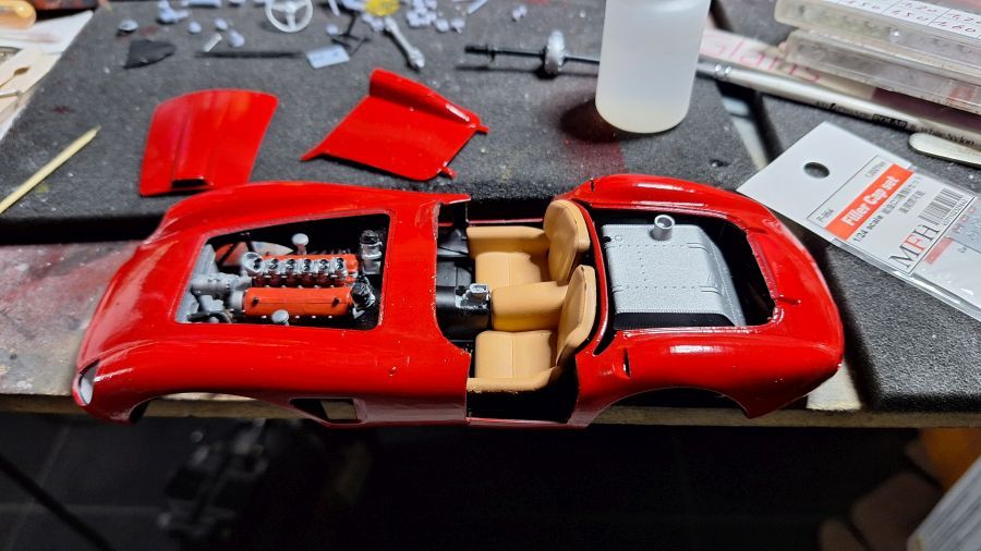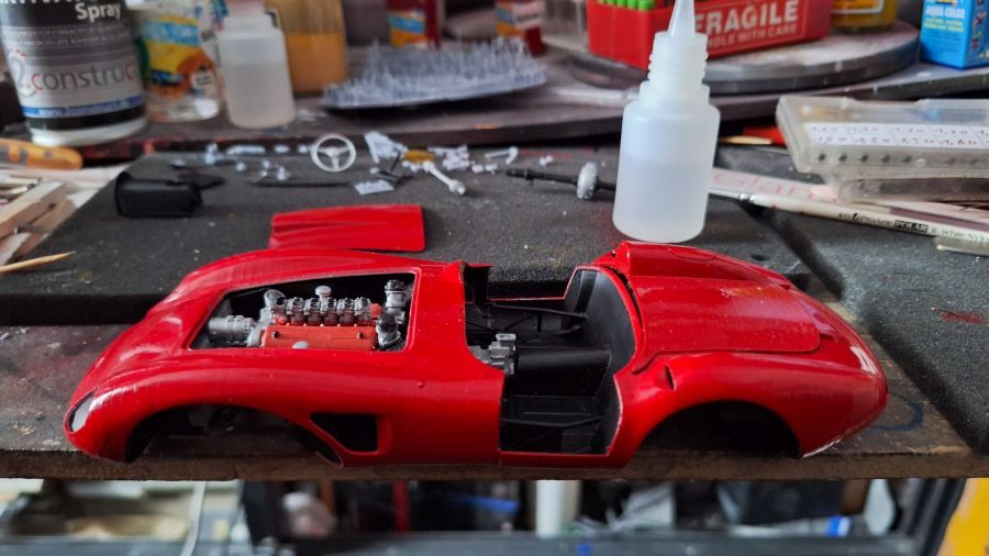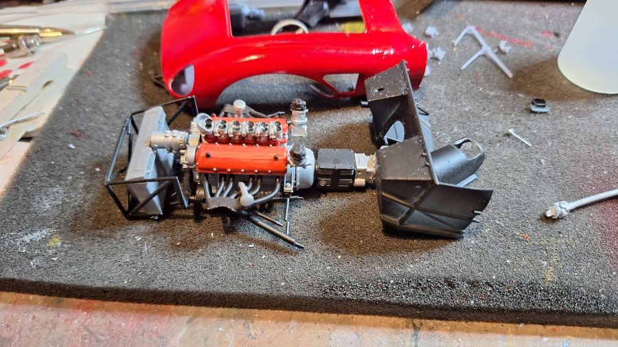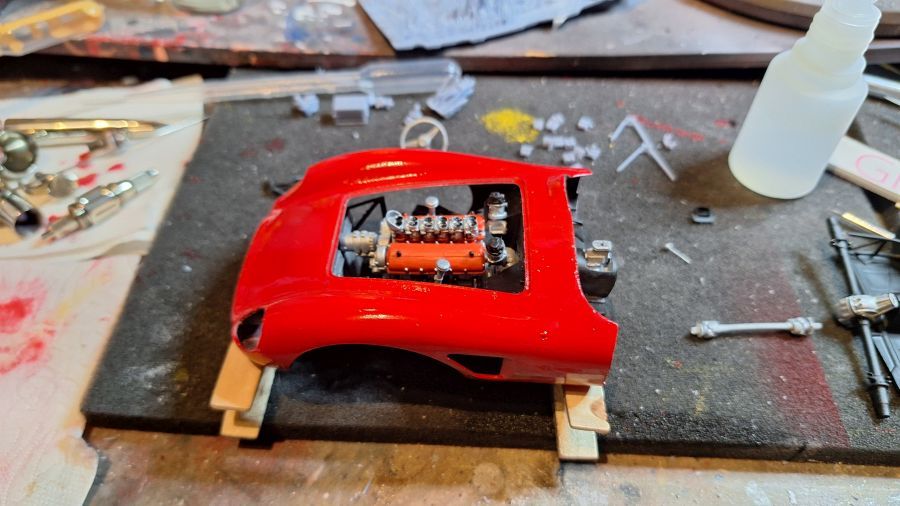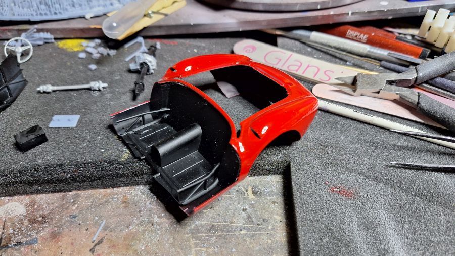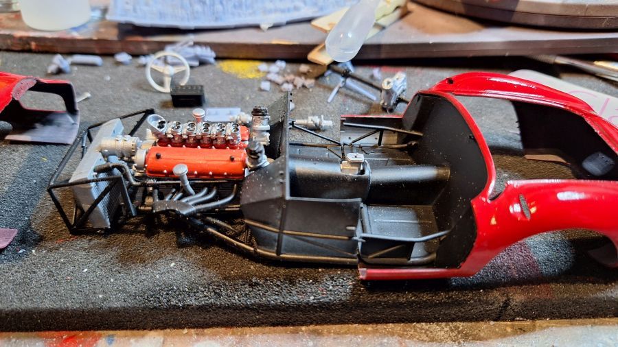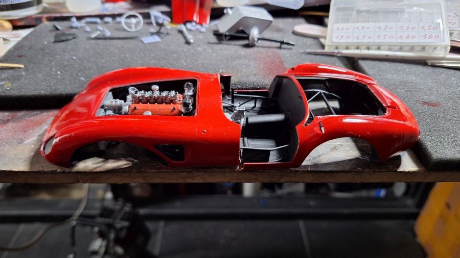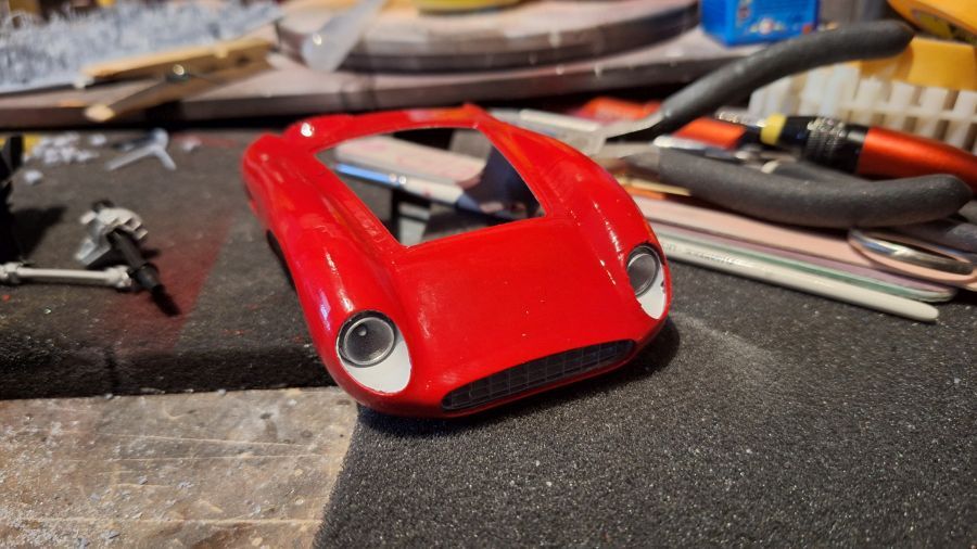 I came across this 3D printed kit of a 1956 Ferrari 625 TR (Test Rossa). This one was driven by Maurice Trintignant at the 24 Hrs of Le Mans. First of all cutting everything with my newly bought ultrasonic knife. It will take a while. Sometimes very tough to determine where to cut.