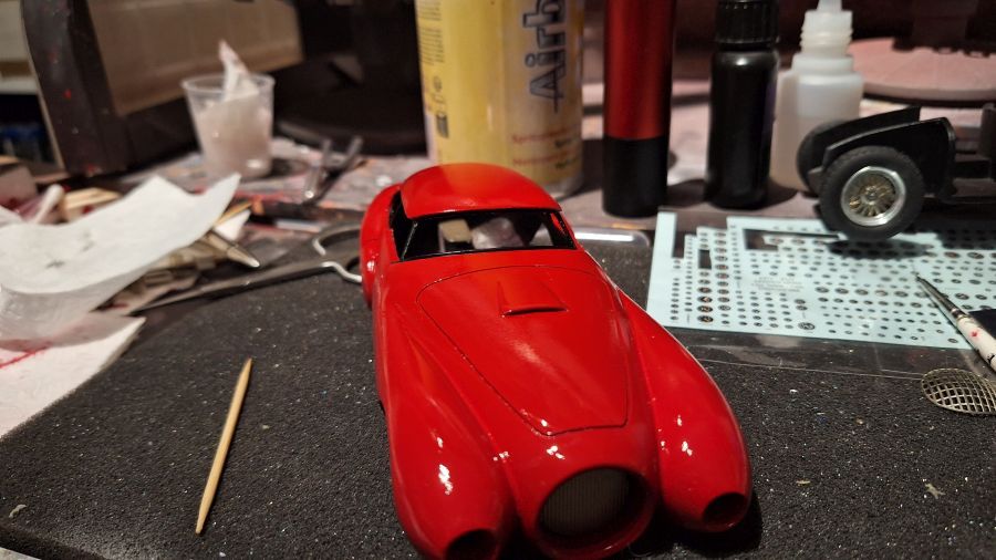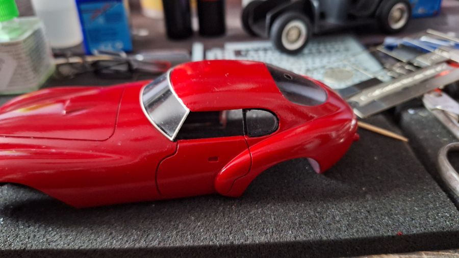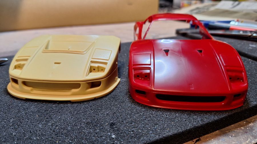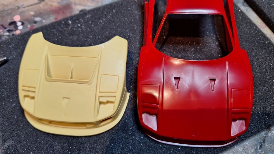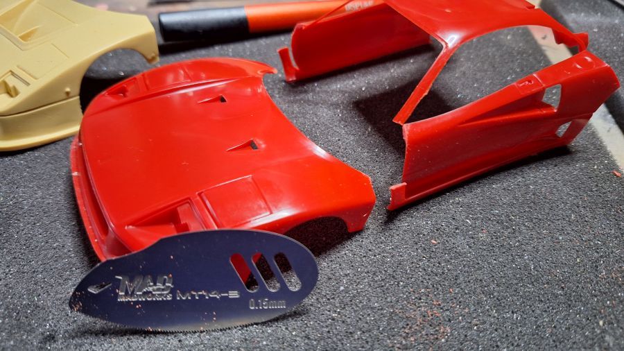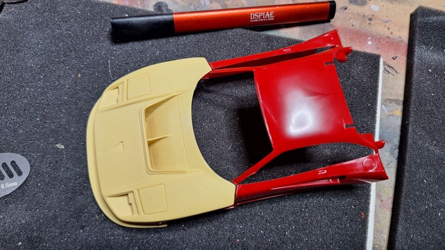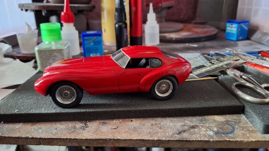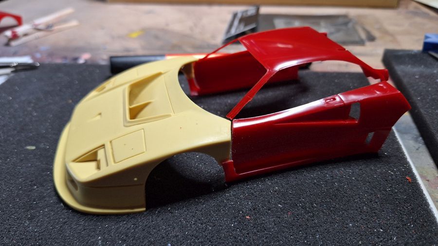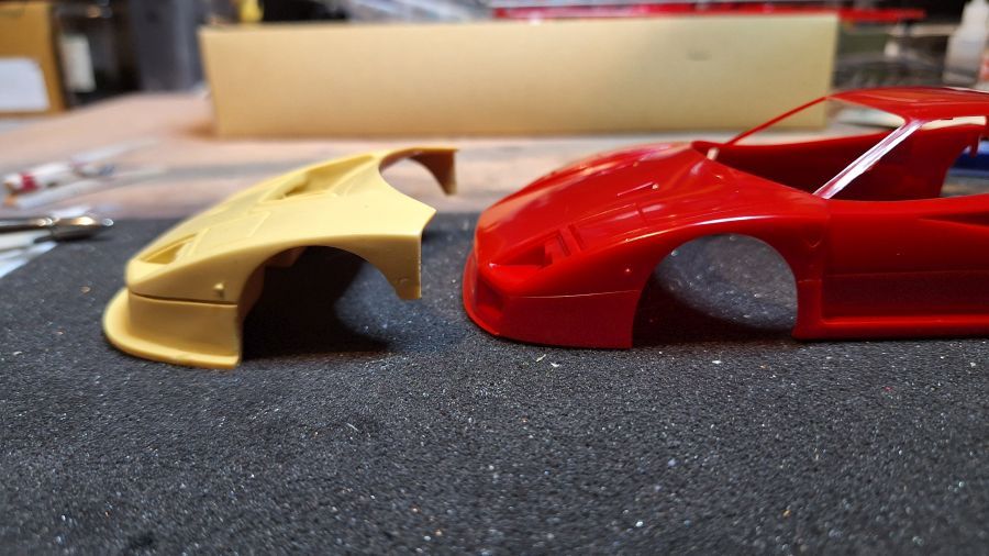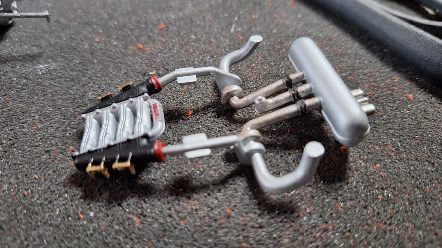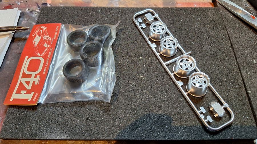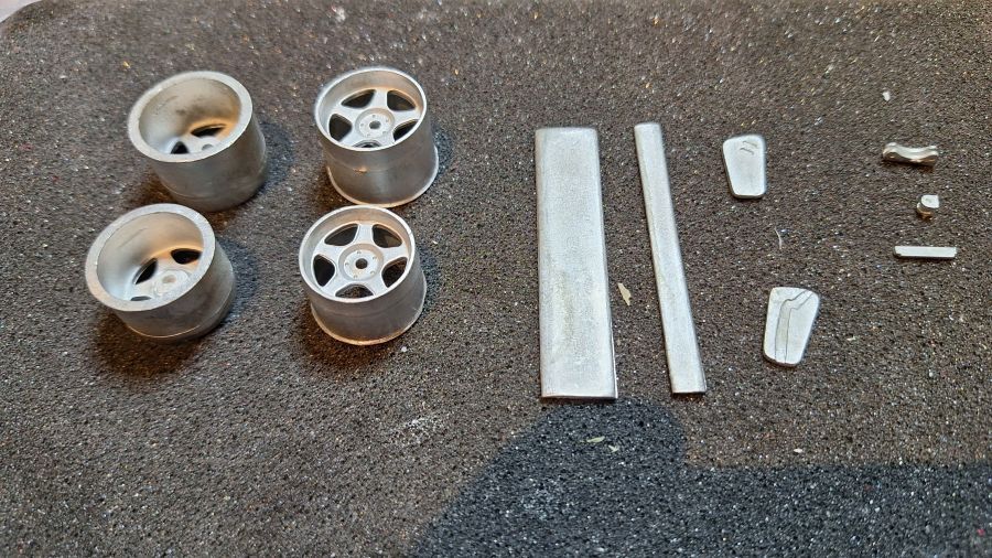 And back to the wheels... I bought 18 inch tires for it, but these ar not wide enough on the rims. I will now use the tires of my Porsche 911 RSR kit. I bought new rims and tires for that one. These don't fit perfect either, but for now i will accept it.