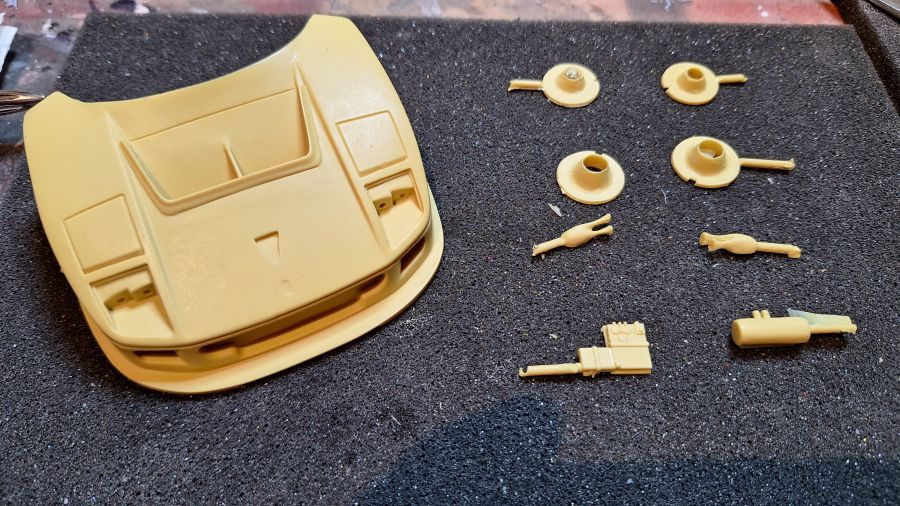 En weer naar de wielen... Ik heb 18 inch banden gekocht, maar deze zijn te smal op de velg. Ik ga nu banden gebruiken uit mijn Porsche 911 RSR kit. Daar heb ik inmiddels 3d geprinte velgen en banden voor. Ook deze passen niet perfect, maar ik doe het er mee.