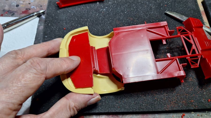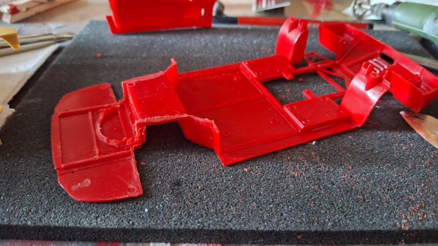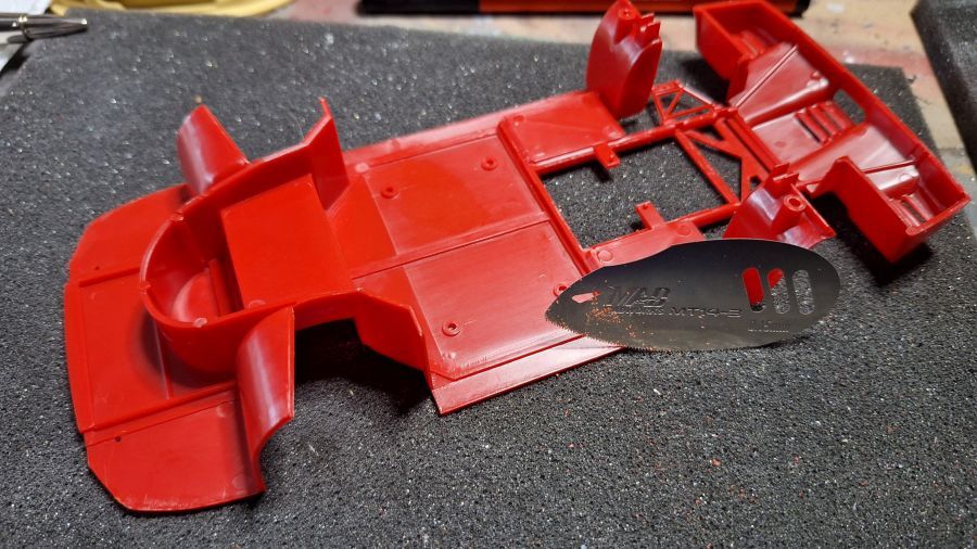 Drawing markings of the floor to build the roll cage. I will make the cage from Evergreen tube.