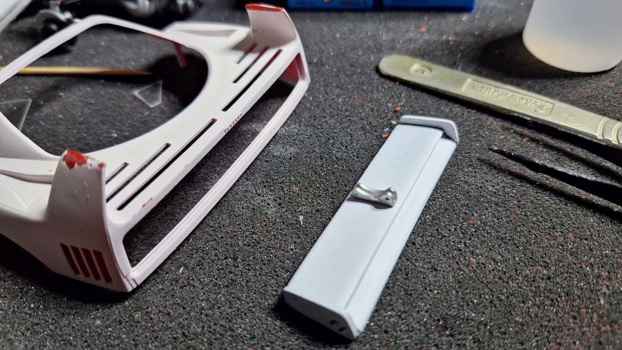 Dan wat chrome decals plaatsen. Ik wilde deze niet met lak afdekken.