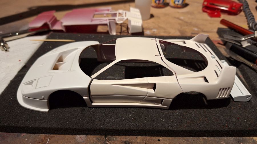 And back to the wheels... I bought 18 inch tires for it, but these ar not wide enough on the rims. I will now use the tires of my Porsche 911 RSR kit. I bought new rims and tires for that one. These don't fit perfect either, but for now i will accept it.