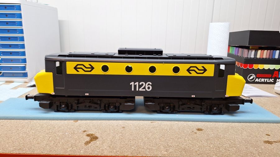 Diverse locomotieven, wagons en treinstellen van NS in schaal G.