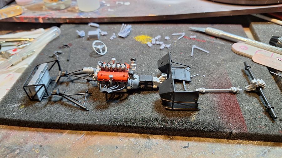 Ik kwam deze 3D geprinte kit van een 1956 Ferrari 625 TR (Testa Rossa) tegen. Deze werd bestuurd door Maurice Trintignant bij de 24 Uur van Le Mans. Eerst alles lossnijden met mijn nieuw aangeschafte ultrasonisch mes. Dat zal even duren. Soms erg lastig te bepalen waar je moet snijden.