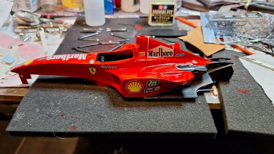 Time for another F1 kit. This time one that's a bit older. The Ferrari F399 from 1999 in the Michael Schumacher Monaco version. Starting problems straight away, because of a damaged floor/diffusor.