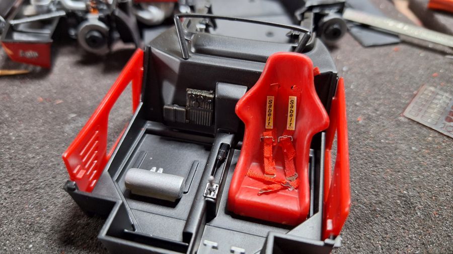 And back to the wheels... I bought 18 inch tires for it, but these ar not wide enough on the rims. I will now use the tires of my Porsche 911 RSR kit. I bought new rims and tires for that one. These don't fit perfect either, but for now i will accept it.