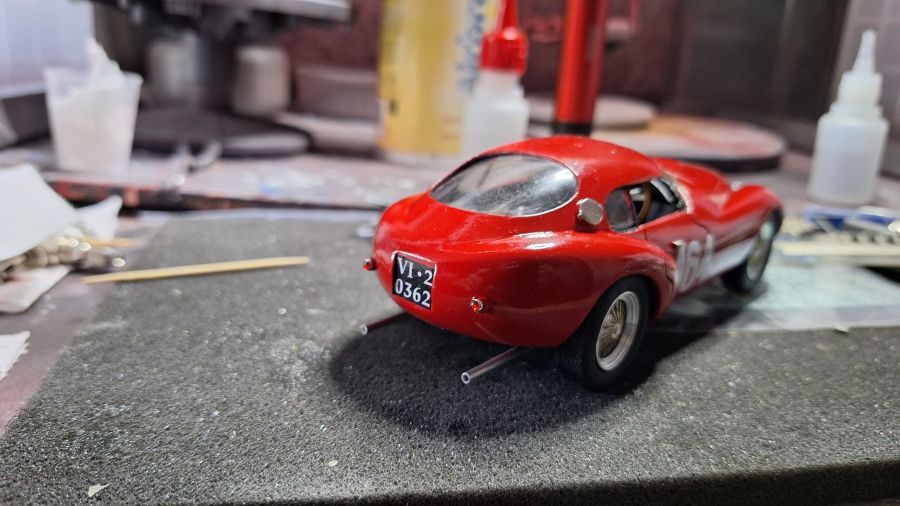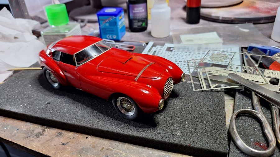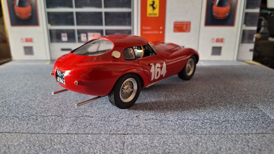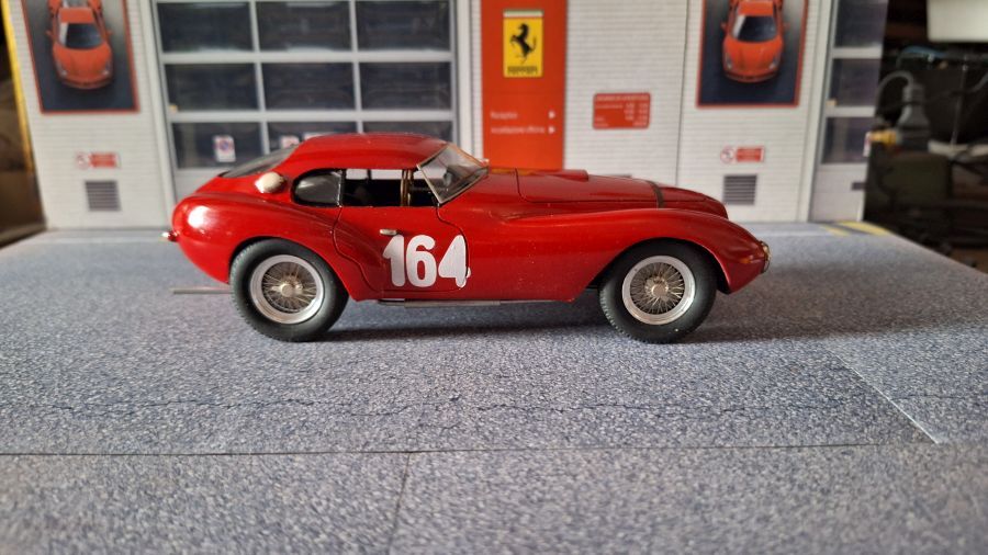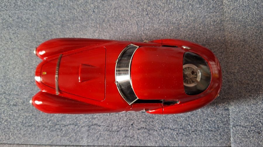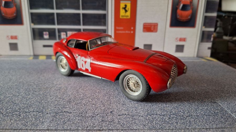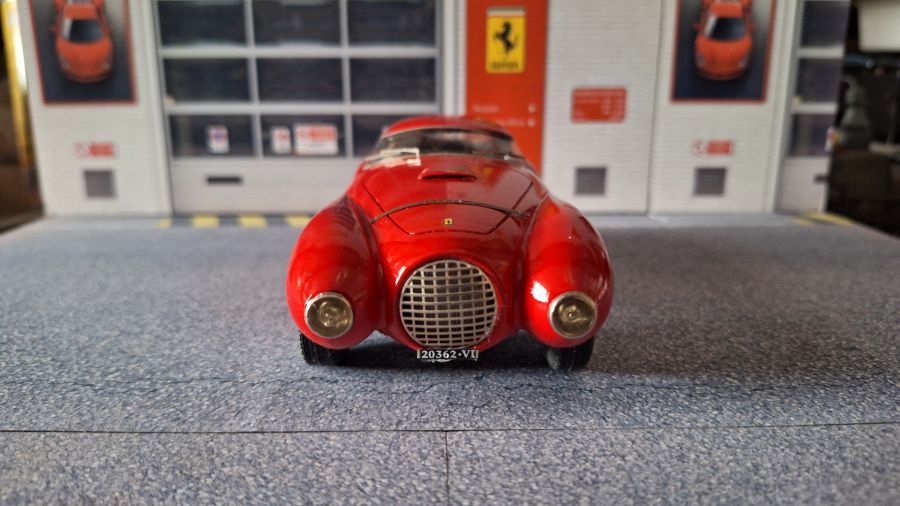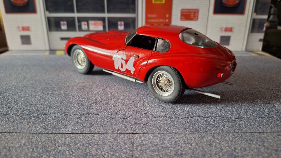 Many will consider this as an 'ugly duck'. The Ferrari 212 'Uovo' (egg) from Scuderia Marzotti that won te race Trento-Bondone. The car was driven by Giulio Cabianca. It's a scale 1/24 kit from Tron (kitno. P224). When we're talking about a long nose on a Jaguar E-type, then this one has a good second place on the list. To me a beautiful model to own.