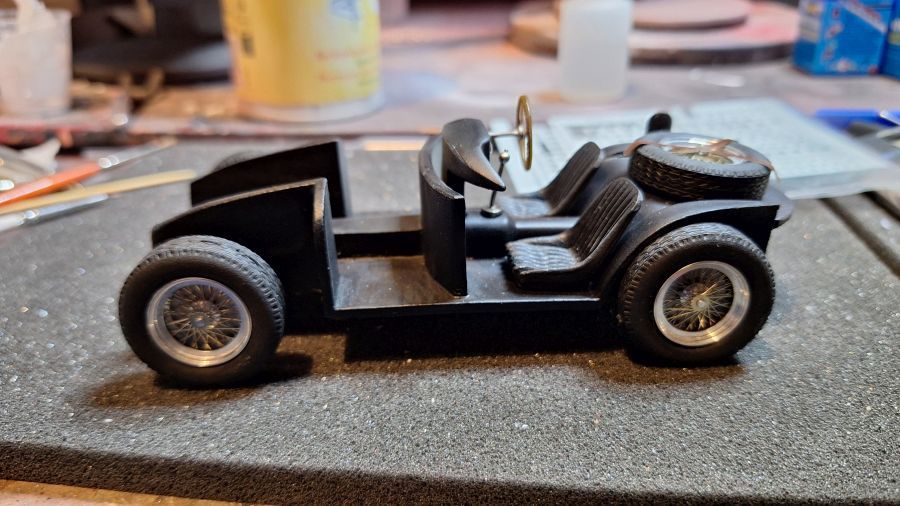 Een kit zonder bouwbeschrijving, altijd oppassen dus. Ik denk dat het allemaal goed is gegaan. Foto's van de echte wagen hebben veel geholpen. Wanneer je deze kit hebt gekocht is het even oppassen. De mijne had de verkeerde decals, miste de assen en de velgen. De decals en velgen zijn nagezonden. Wel is het een bijzondere kit, omdat er geen vloer onder de auto zit.